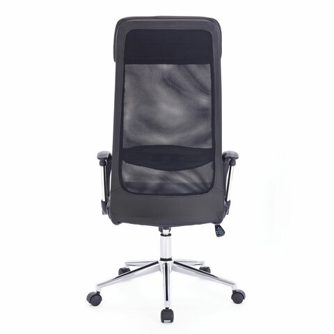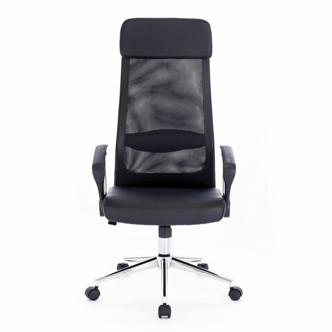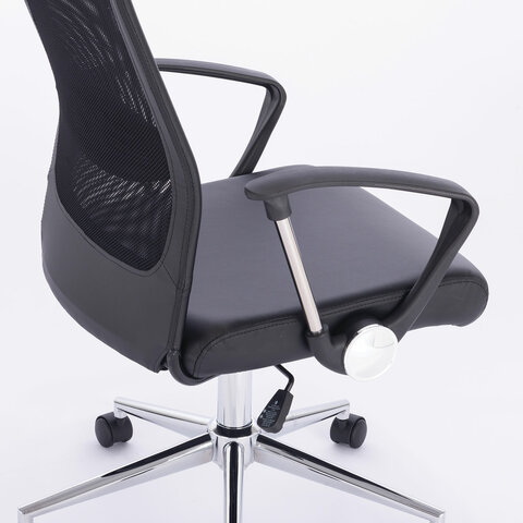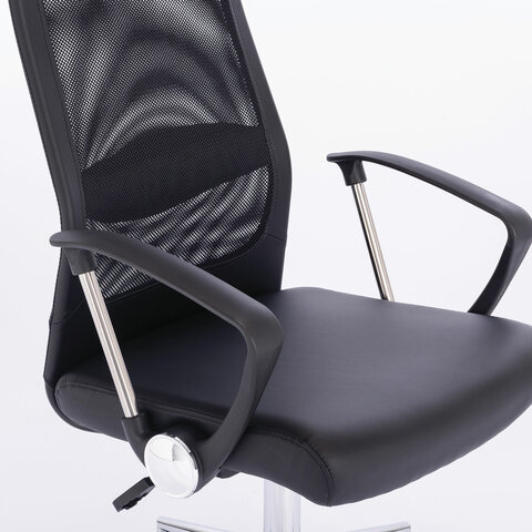 Кресло офисное BRABIX "Flight R EX-541", хром, экокожа, сетка, черное, 532516