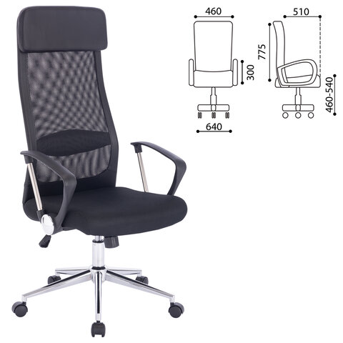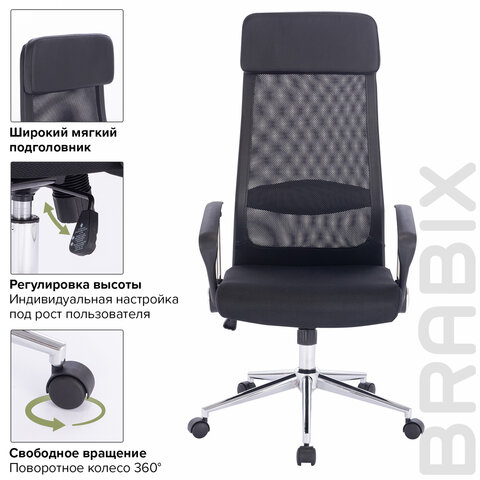 Кресло офисное BRABIX "Flight R EX-541", хром, ткань TW, сетка, черное, 532517