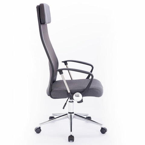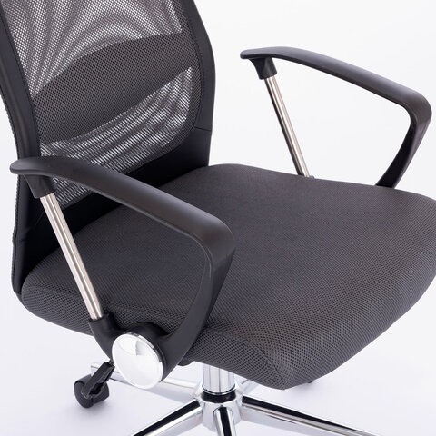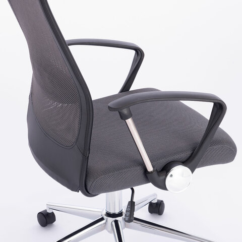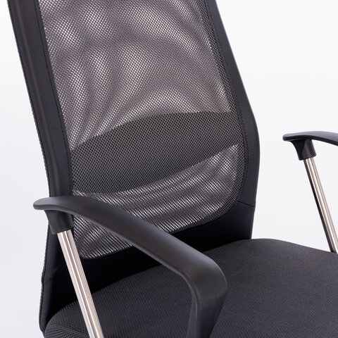 Кресло офисное BRABIX "Flight R EX-541", хром, ткань TW, сетка, черное/серое, 532518