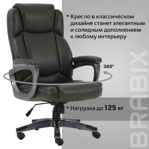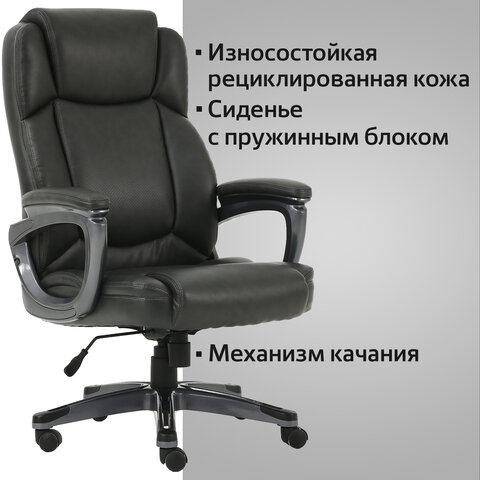 Кресло офисное BRABIX PREMIUM "Favorite EX-577", пружинный блок, рециклированная кожа, серое, 531935