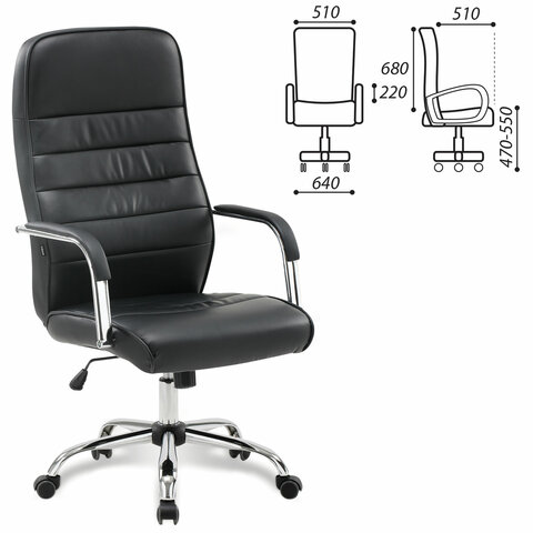 Кресло офисное BRABIX "Stark EX-547", экокожа, хром, черное, 531948