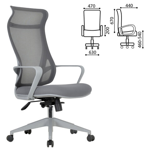 Кресло офисное CHAIRMAN CH 577, эргономичная спинка, серый пластик, сетка/ткань, серое, 7146057