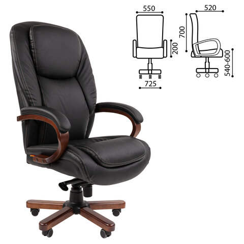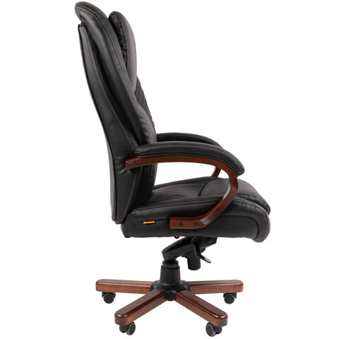 Кресло офисное CHAIRMAN СН 408, НАГРУЗКА до 150 кг, дерево, натуральная кожа, черное, 7030084