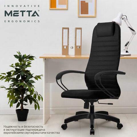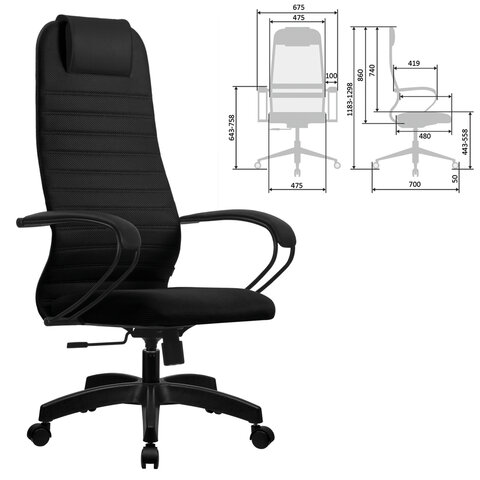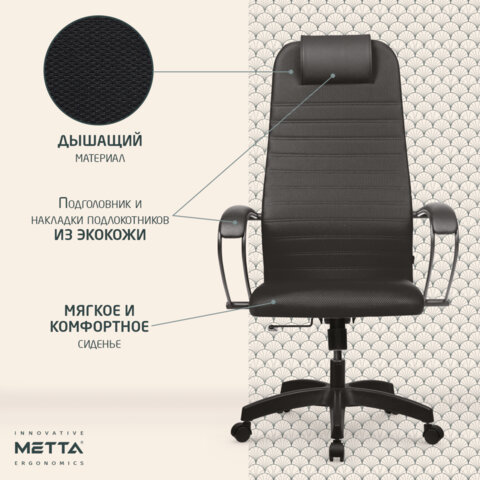Кресло офисное МЕТТА "SU-B-10" пластик, ткань-сетка, сиденье и спинка мягкие, черное