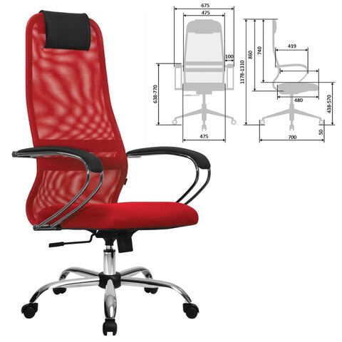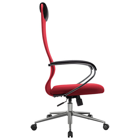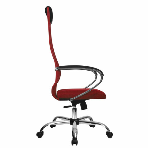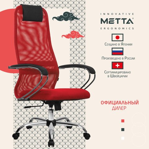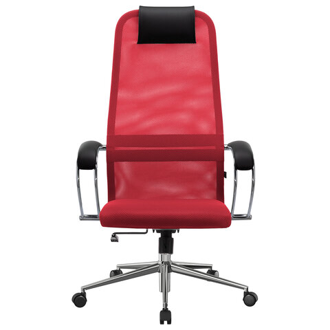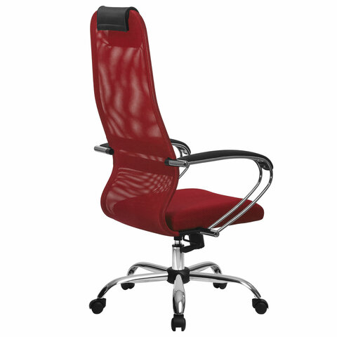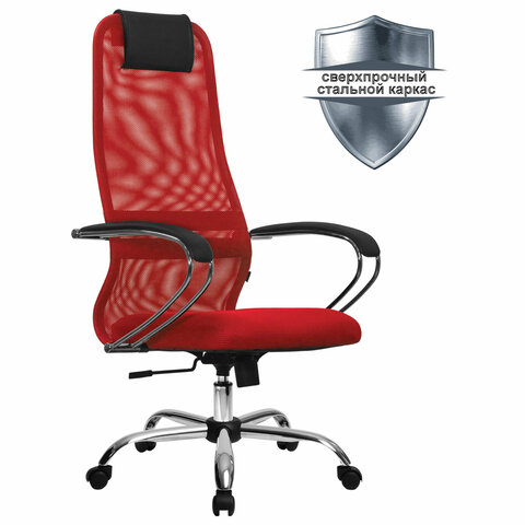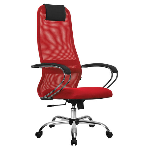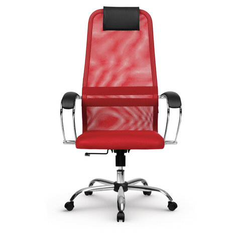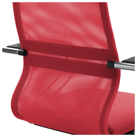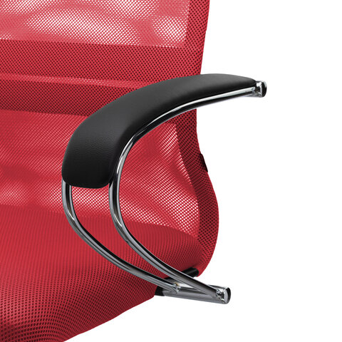 Кресло офисное МЕТТА "SU-B-8" хром, ткань-сетка, сиденье мягкое, красное