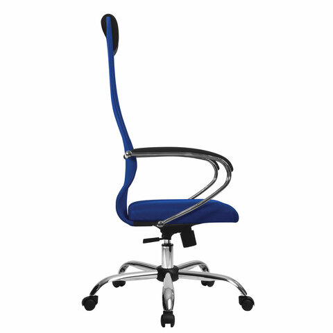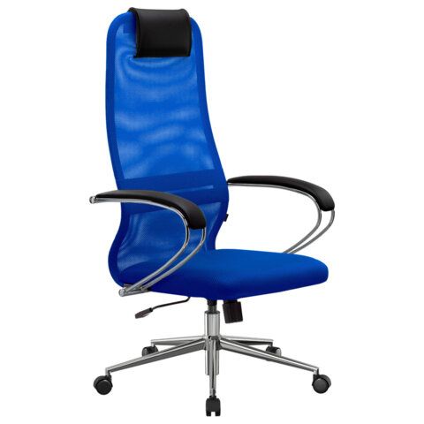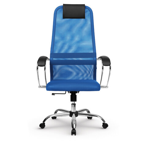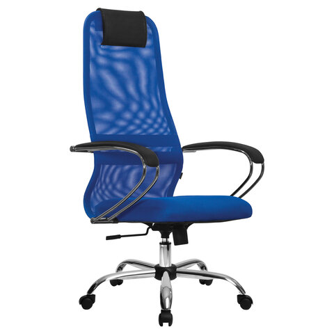Кресло офисное МЕТТА "SU-B-8" хром, ткань-сетка, сиденье мягкое, синее