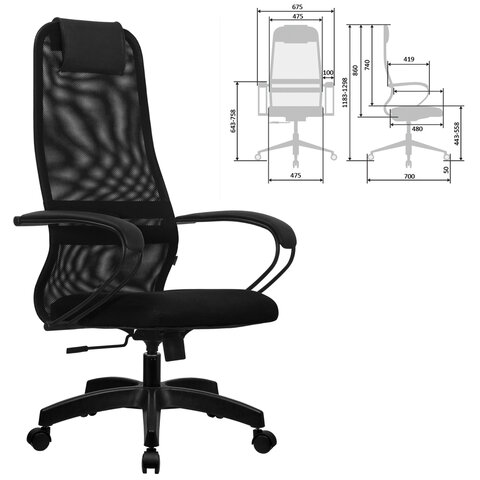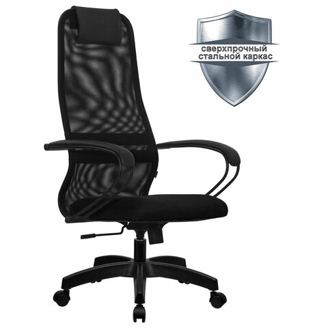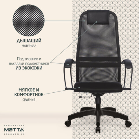 Кресло офисное МЕТТА "SU-B-8" пластик, ткань-сетка, сиденье мягкое, черное