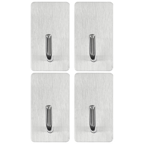 Крючки самоклеящиеся универсальные 2,5x4,5 см, КОМПЛЕКТ 4 шт., сталь, серебристые, LAIMA HOME, 608788