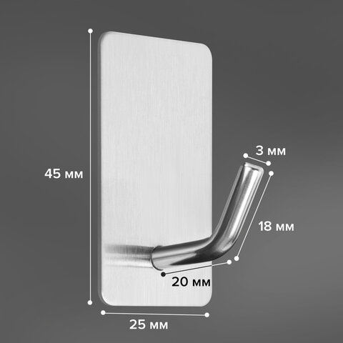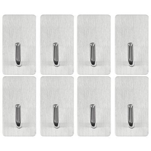 Крючки самоклеящиеся универсальные 2,5x4,5 см, КОМПЛЕКТ 8 шт., сталь, серебристые, LAIMA Home, 608789