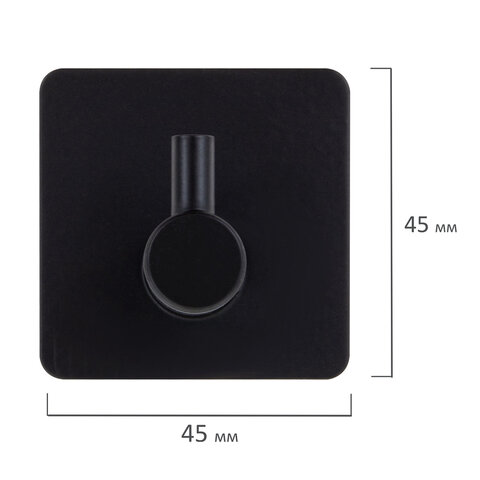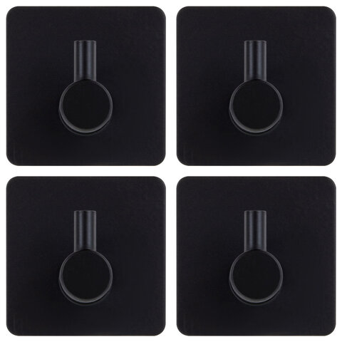 Крючки самоклеящиеся универсальные 4,5x4,5 см, КОМПЛЕКТ 4 шт., сталь, черные, LAIMA Home, 608786