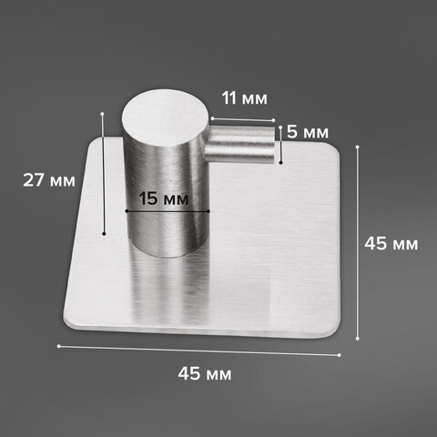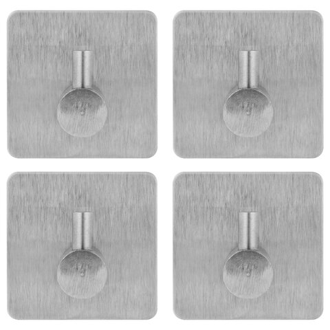 Крючки самоклеящиеся универсальные 4,5x4,5 см, КОМПЛЕКТ 4 шт., сталь, серебристые, LAIMA Home, 608785