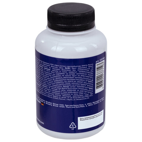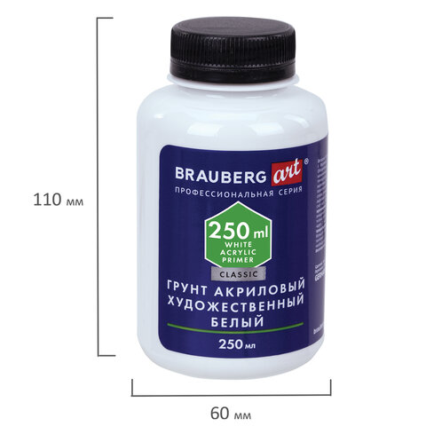 Грунт акриловый художественный, белый, в бутылке, 250 мл, BRAUBERG ART CLASSIC, 192348