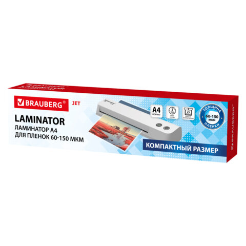 Ламинатор BRAUBERG JET 230W БЕЛЫЙ компактный, А4, 60-150 мкм, скорость 25 см/мин, 532859