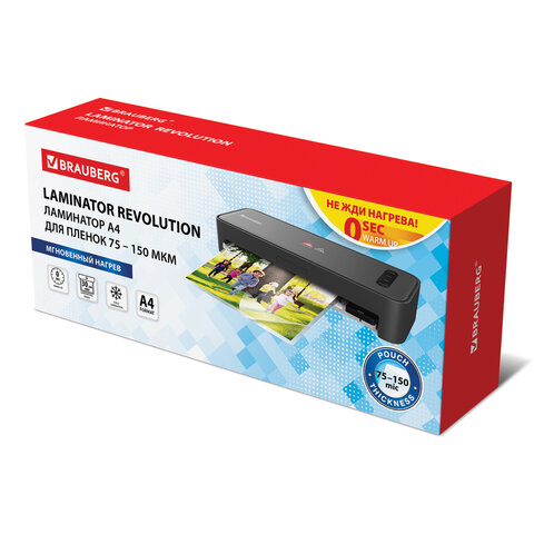 Ламинатор с БЫСТРЫМ НАГРЕВОМ BRAUBERG REVOLUTION A4, пленка 75-150 мкм, скорость 30 см/мин., 532627