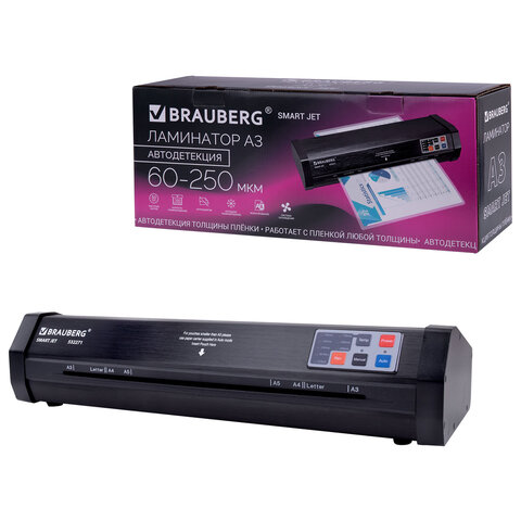 Умный ламинатор BRAUBERG SMART JET, формат А3, с функцией АВТОДЕТЕКЦИИ толщины пленки 60-250 мкм, быстрый нагрев 50 сек., 100 см/мин, 532271