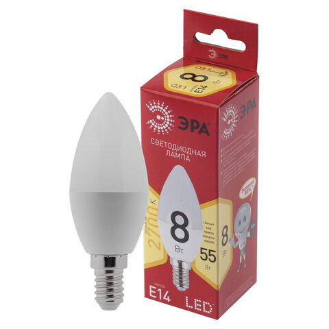 Лампа светодиодная ЭРА RED LINE, 8 (55) Вт, цоколь Е14, свеча, теплый белый свет, 25000 ч., LED B35-8W-2700-E14, Б0050694