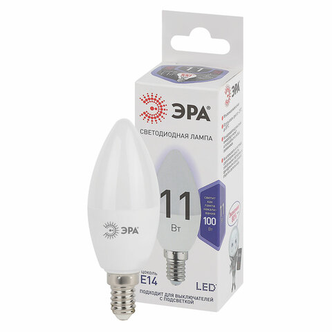Лампа светодиодная ЭРА STD, 11 (100) Вт, цоколь E14, свеча, холодный белый свет, 35000 ч., LED B35-11W-860-E14, Б0032984