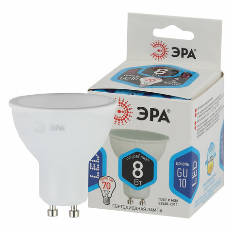 Лампа светодиодная ЭРА STD, 8 (70) Вт, цоколь GU10, софит, нейтральный белый свет, 35000 ч., LEDMR16-8W-840-GU10, Б0036729