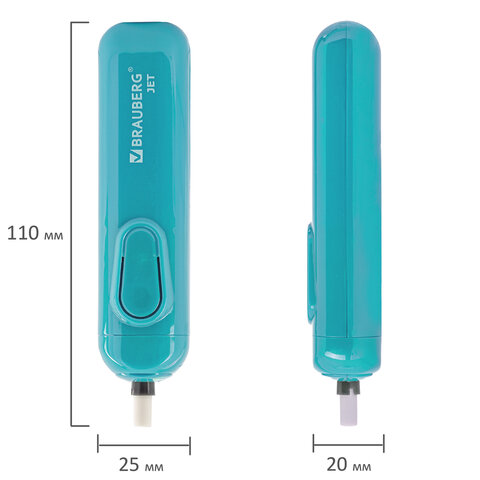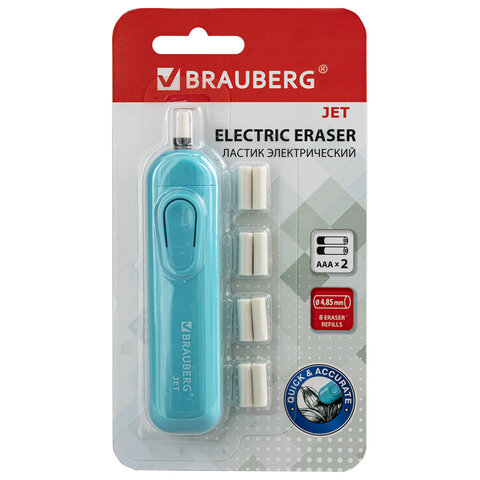Ластик электрический BRAUBERG "JET", питание от 2 батареек ААА, 8 сменных ластиков, голубой, 229612