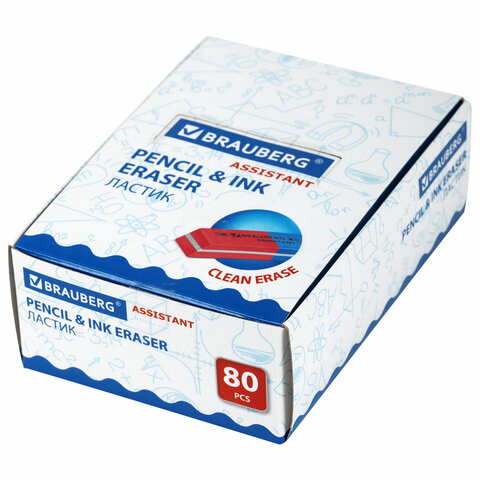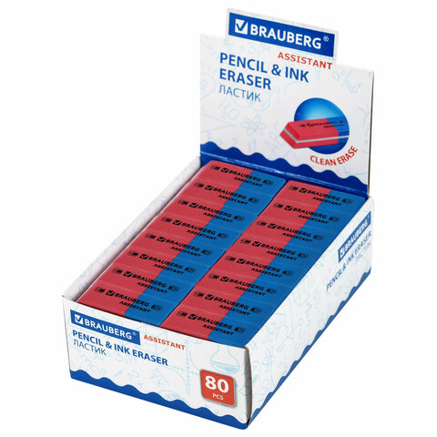 Ластик BRAUBERG "Assistant 80" предназначен для удаления надписей, сделанных чернографитными карандашами.
