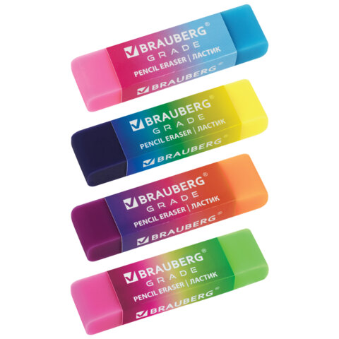 Ластик BRAUBERG "Grade" выполнен в градиентных цветах и предназначен для удаления надписей, сделанных чернографитным карандашом.