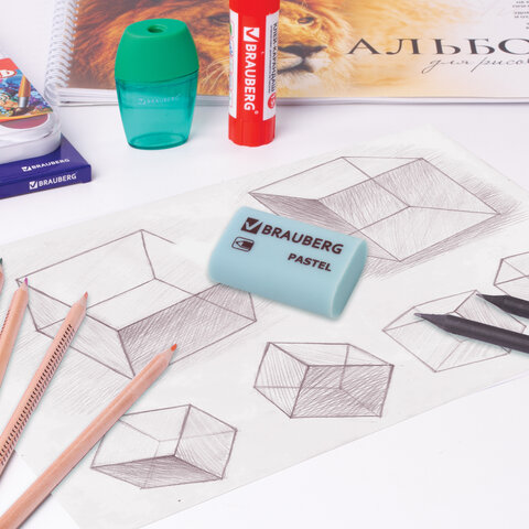 Ластик BRAUBERG "Pastel" обеспечивает лёгкое и чистое стирание без повреждения поверхности бумаги.