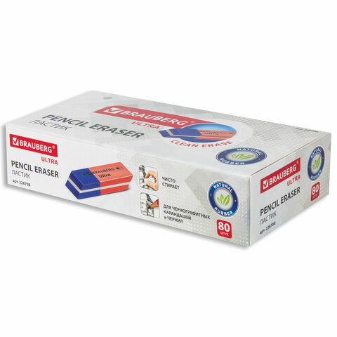 Ластик BRAUBERG "Ultra" предназначен для удаления надписей, сделанных чернографитным карандашом или чернилами.