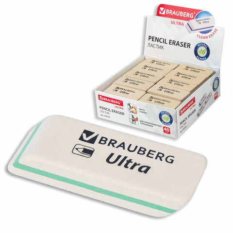 Ластик BRAUBERG "Ultra" предназначен для удаления надписей, сделанных чернографитным карандашом.