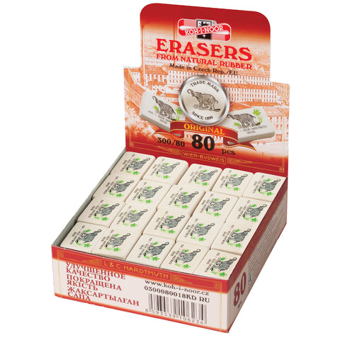 Ластик KOH-I-NOOR "Слон" 300/80, 26х19х8 мм, белый/цветной, прямоугольный, натуральный каучук, 0300080018KDRU