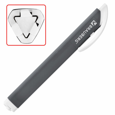 Ластик выдвижной + 2 сменных ластика BRAUBERG "TRIOS", 124х12х12 мм, графитовый корпус, 272692