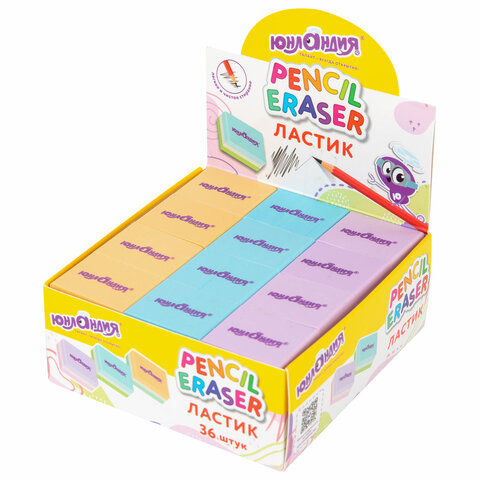 Ластик ЮНЛАНДИЯ "Square", 30х24х13 мм, прямоугольный, пастельные цвета ассорти, 272673