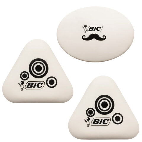 Набор из трех ластиков BIC. Предназначены для удаления надписей, сделанных чернографитными карандашами.