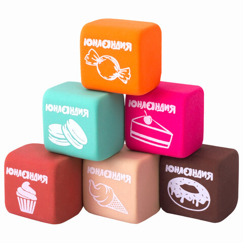 Набор ластиков ЮНЛАНДИЯ "СЛАДКИЕ ИСТОРИИ" 6 шт., размер 21х21х16 мм, ароматизированные, 229584,