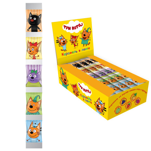 Карамель леденцовая 5+ "Три Кота" с ягодно-фруктовыми вкусам – прекрасное лакомство для детей. Яркий дизайн с изображением любимых персонажей, насыщенный вкус и компактный формат лентой 5 шт. по 3,6 г – отличный выбор для угощения.