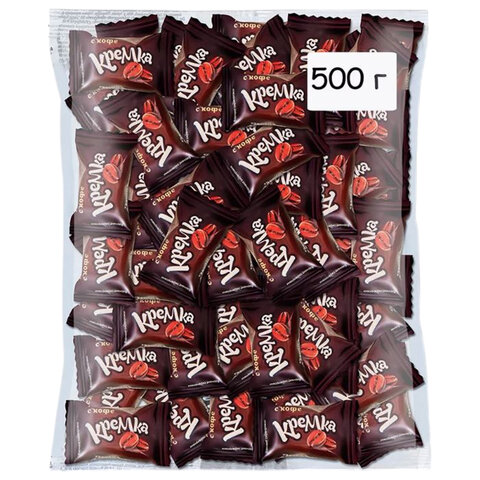 КРЕМКА с кофе – это круглые карамельки с добавлением жареного молотого кофе. Они обладают ярким вкусом и ароматом кофе арабика без горчинки, что отличает их от других кофейных карамелек. Карамель имеет натуральный цвет кофе и не содержит красителей.