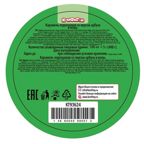 Карамель ВЗРЫВ МОЗГА ассорти 2 вкуса (кола, арбуз), 3 г, КОНФИТОЙ, КТ93624