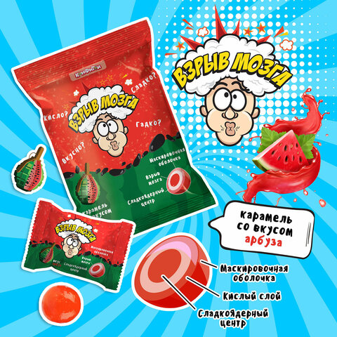 Карамель "ВЗРЫВ МОЗГА" со вкусом арбуза 15 г, 5 конфет в пакете, КОНФИТОЙ, КТ92714