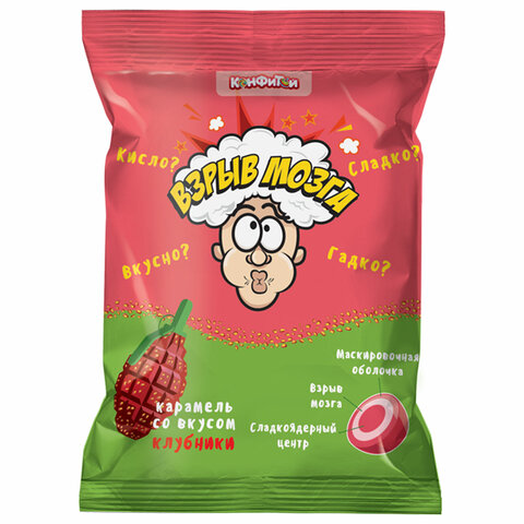 Карамель ВЗРЫВ МОЗГА со вкусом клубники 15 г, 5 конфет в пакете, КОНФИТОЙ, КТ93243