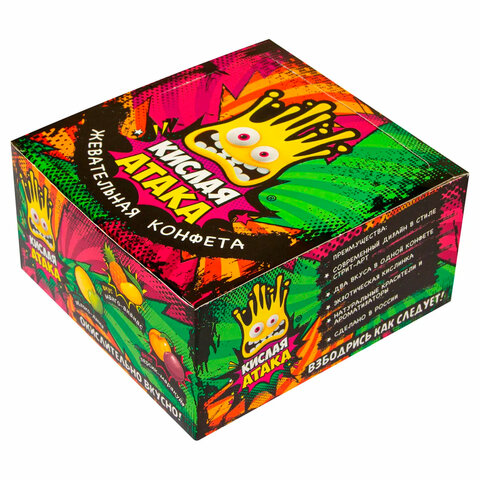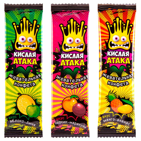 Конфета жевательная КИСЛАЯ АТАКА ассорти 3 вкусов, 11 г, KA-10-1