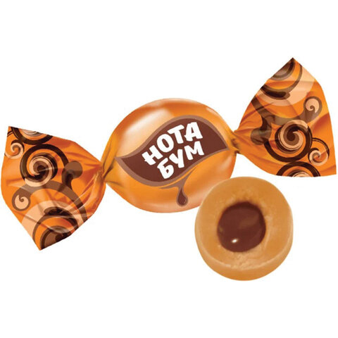 Мягкая жевательная карамель с орехово-шоколадной начинкой. Карамель «Нота Бум» – уникальный продукт. У конфеты нет аналогов в России.