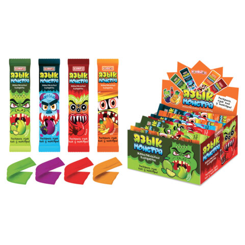 Жевательная конфета "ЯЗЫК МОНСТРА" ассорти 4 вкуса, 10 г, КОНФИТОЙ, КТ94734