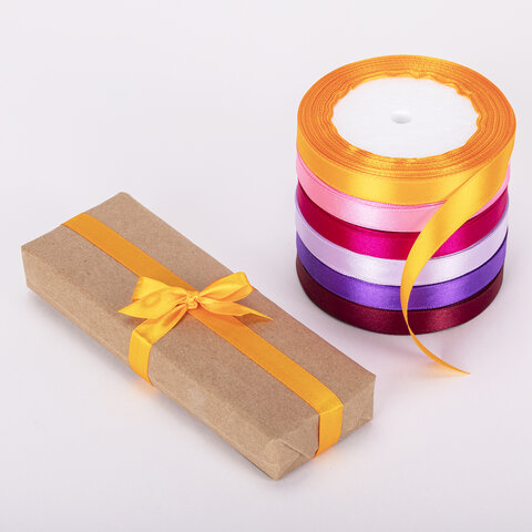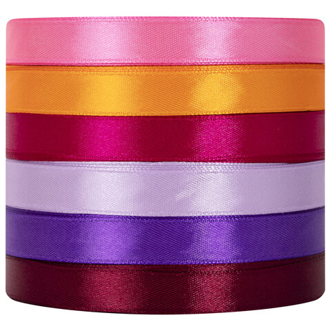 Лента атласная ширина 12 мм, набор №2 6 цветов по 23 м, BRAUBERG, 591500