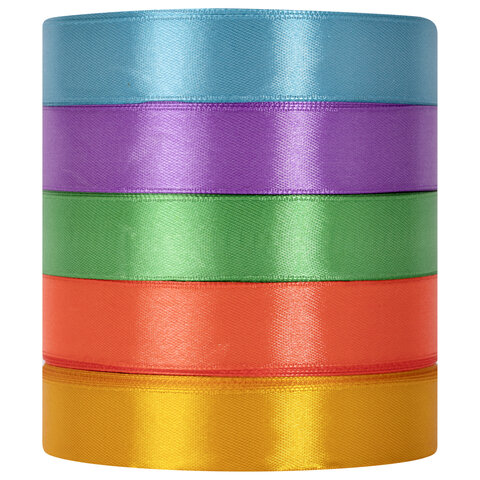 Лента атласная ширина 20 мм, набор 5 цветов по 23 м, BRAUBERG, 591504