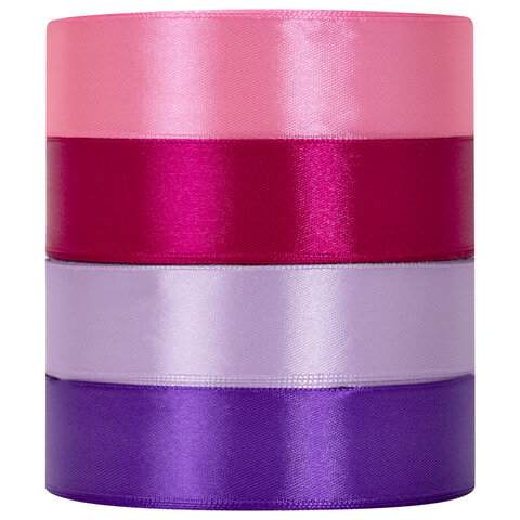 Лента атласная ширина 25 мм, набор №3 4 цвета по 23 м, BRAUBERG, 591503