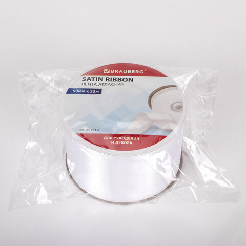 Лента атласная ширина 50 мм, длина 23 м, белая, BRAUBERG, 591519
