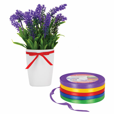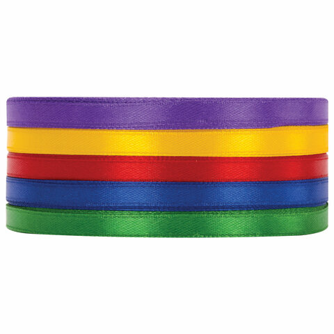 Лента атласная ширина 6 мм, ИНТЕНСИВ набор 5 цветов по 23 м, BRAUBERG, 591489