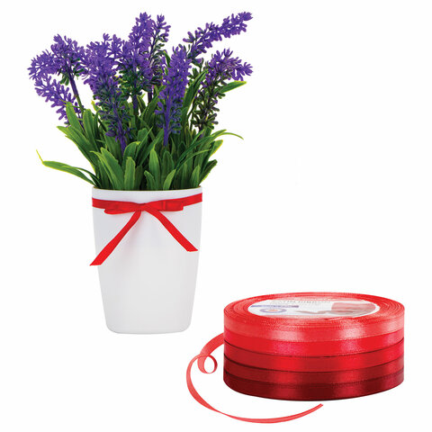 Лента атласная ширина 6 мм, КРАСНЫЙ СПЕКТР набор 5 цветов по 23 м, BRAUBERG, 591496