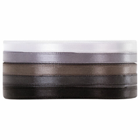 Лента атласная ширина 6 мм, СЕРЫЙ СПЕКТР набор 5 цветов по 23 м, BRAUBERG, 591497