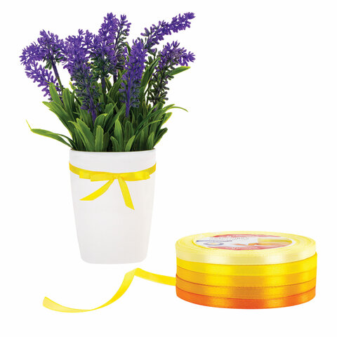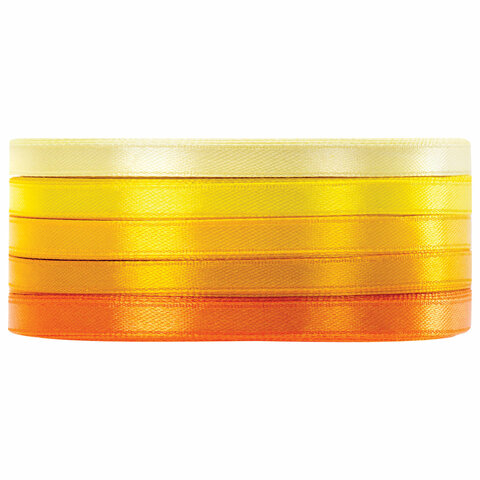 Лента атласная ширина 6 мм, ЖЕЛТЫЙ СПЕКТР набор 5 цветов по 23 м, BRAUBERG, 591495