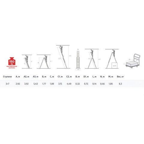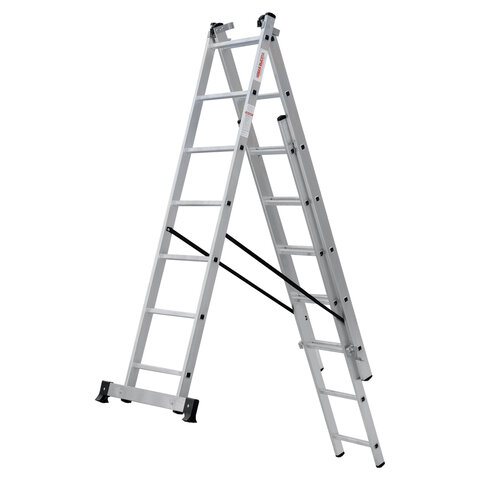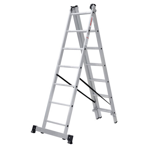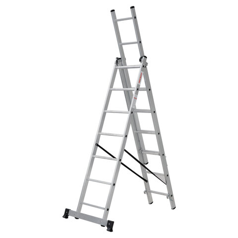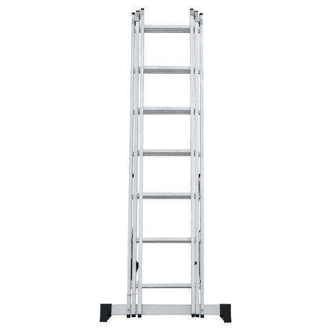 Лестница-трансформер 3-х секционная 3х7 ступеней, высота 4,5 м (3 секции по 1,9 м), нагрузка 150 кг, алюминий, НОВАЯ ВЫСОТА, 1230307